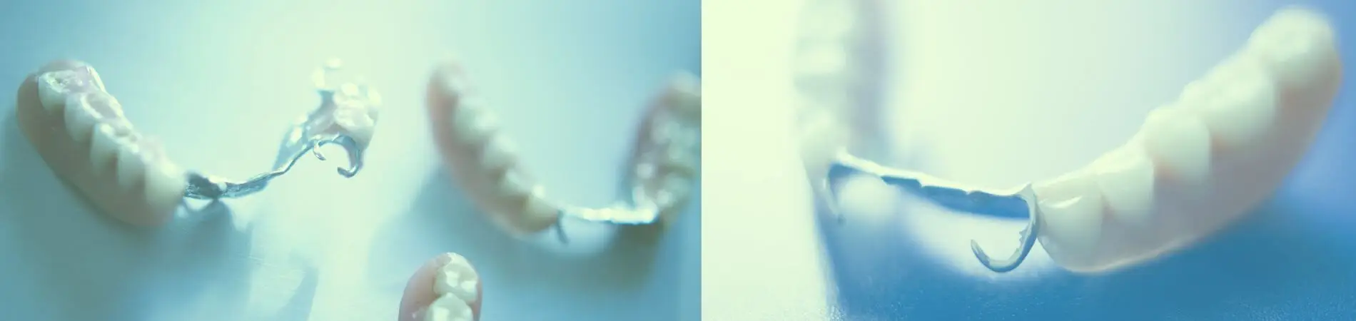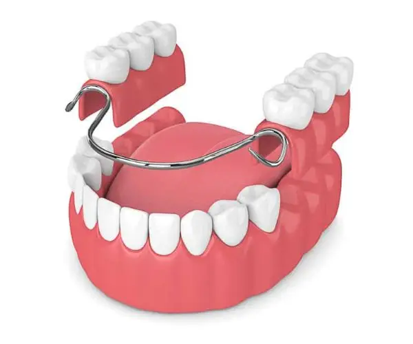 Diese Prothese besteht aus einem Metallgerüst, das auf den verbliebenen Zähnen befestigt wird.