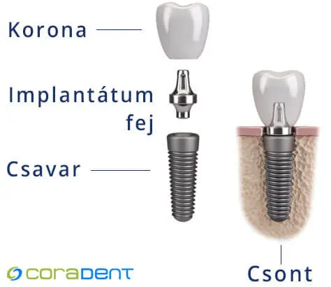 - Gyógyulási időszak: Beültetés után egy 4-6 hónapos pihenő időszak következik, hogy legyen ideje a csavaroknak becsontosodni.